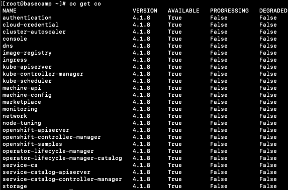 Before finishing the installation, check if all the cluster operators are online.